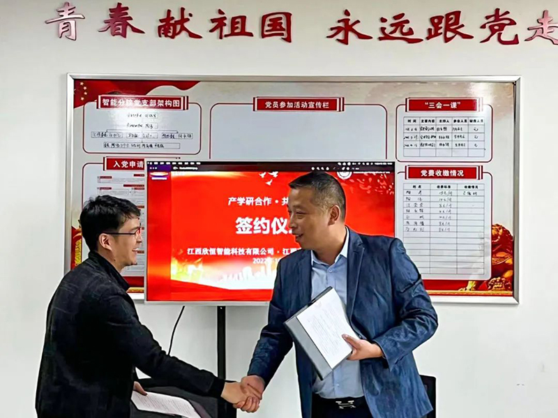 2022年10月27日,江西欣恒智能科技有限公司(以下简称“欣恒科技”)与江西泰豪动漫职业学院举行产学研合作签约仪式。江西泰豪动漫职业学院智能科学与技术系主任陶彦、副主任陶伟、教务主任李建红、计算机教研室黄铜仁、建筑专业教师章建,欣恒科技总经理王轲、技术经理唐文俊、办公室主任陈敏琼、高级软件工程师万强等出席签约仪式。