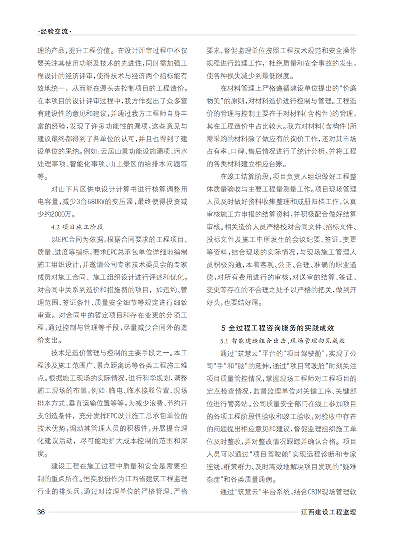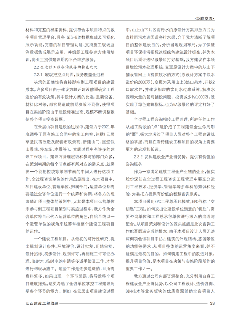 2023年度在省建设监理协会党支部的关心指导下,《江西建设工程监理》编刊办刊工作始终坚持以习近平新时代中国特色社会主义思想为指导,全面贯彻落实党的二十大精神,在宣传党的方针政策,行业发展研究、专业理论与经验交流、优秀企业与从业人员等方面发挥了重要的窗口作用,营造了良好的学习和宣传氛围,涌现出一批好稿力作。公司《云居山东部片区人居环境改造工程全过程工程咨询案例》刊登在“经验交流”栏目中作为全过程工程咨询项目的典型案例重点推介。